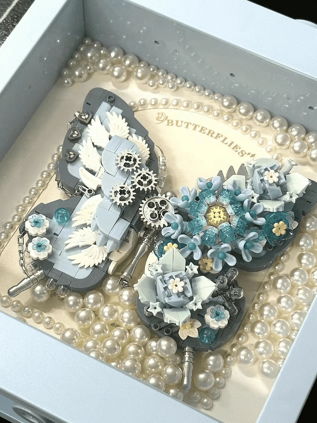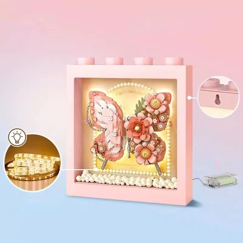 Klasik Lego parçalarıyla oluşturulan kelebek figürü, duvarlarda modern ve zarif bir dekorasyon sağlar.